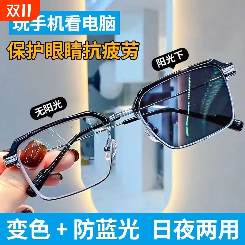 感光男女防蓝光辐射抗疲劳平光眼镜半框护眼防近视无度数变色两用