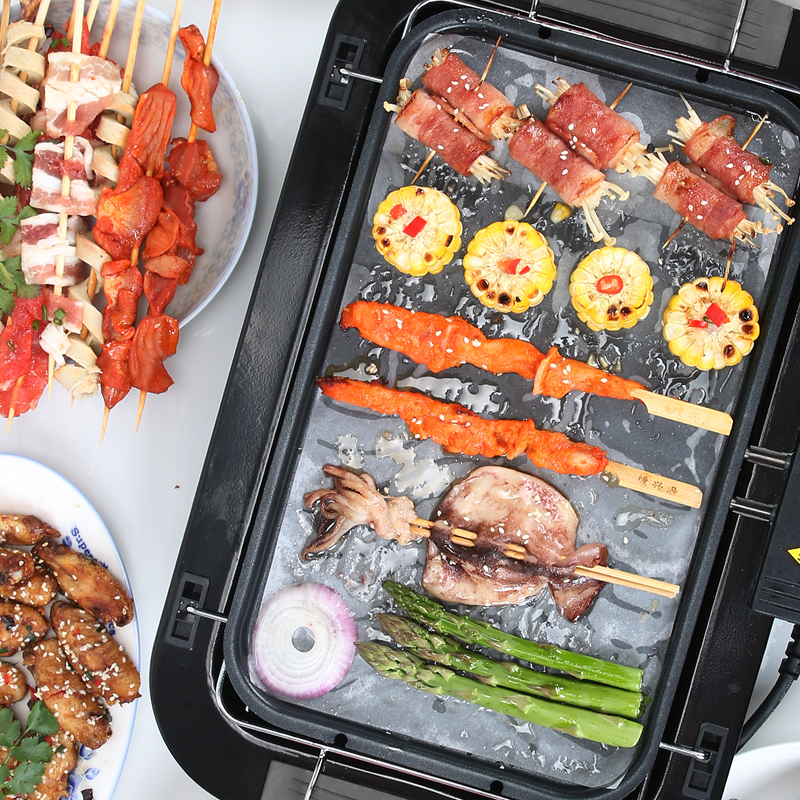梦创电烧烤炉家用少烟烧烤室内多功能电烤盘烤肉锅炉子烤架烤串机