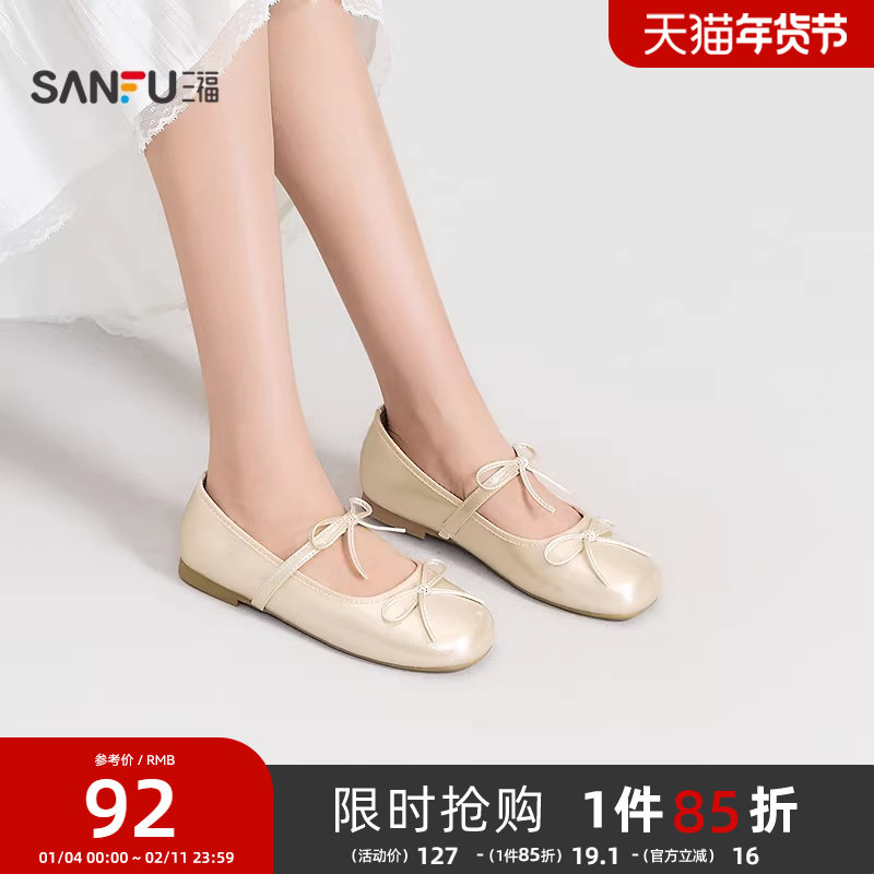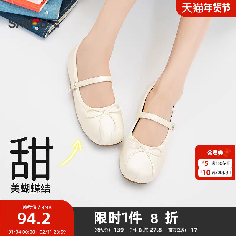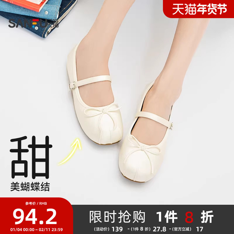 - 绑带平底单鞋 女