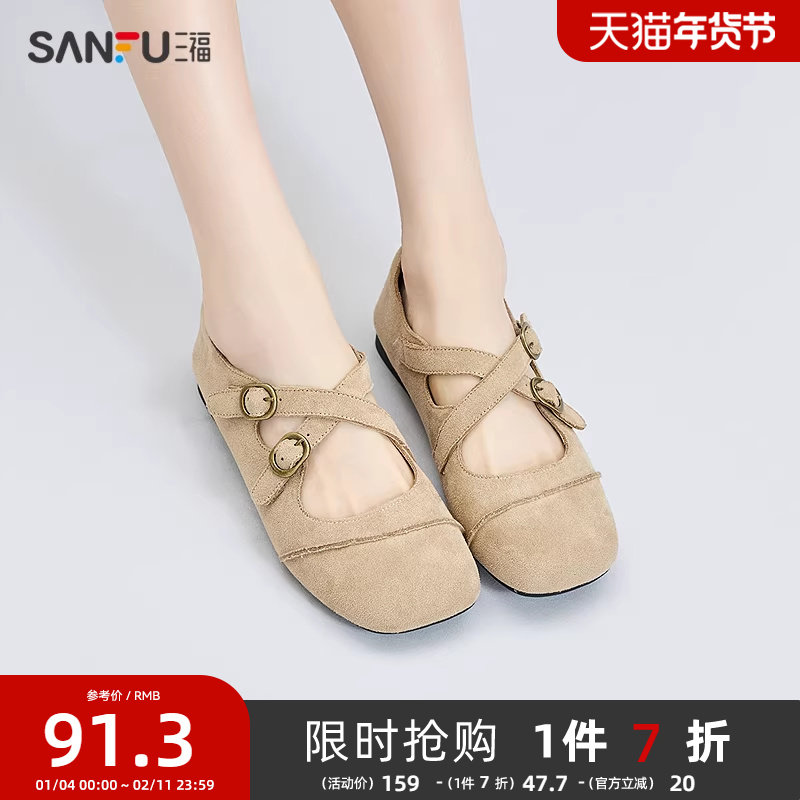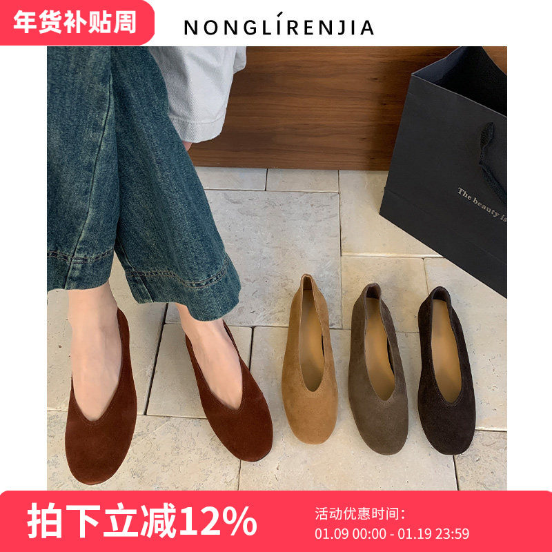 - 平底绒面女单鞋