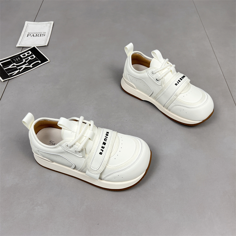 2025新款真皮娃娃头大头魔术贴厚底松糕小白鞋面包鞋休闲板鞋女鞋
