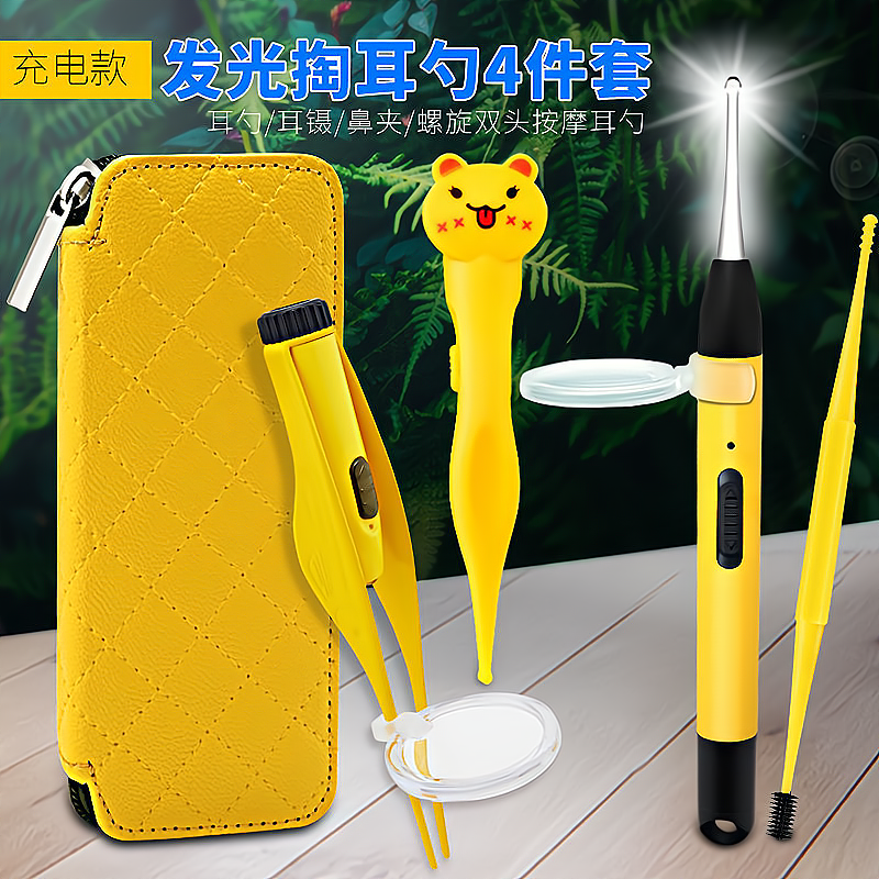 古迪儿童掏耳神器安全发光耳勺婴儿专用带灯宝宝挖可视耳镊鼻屎夹