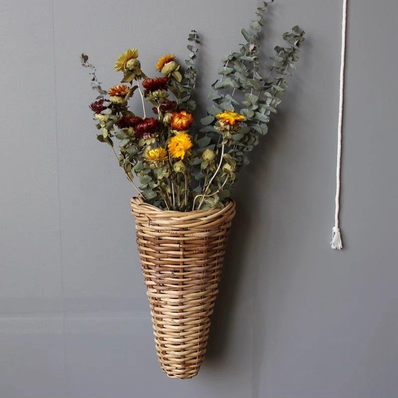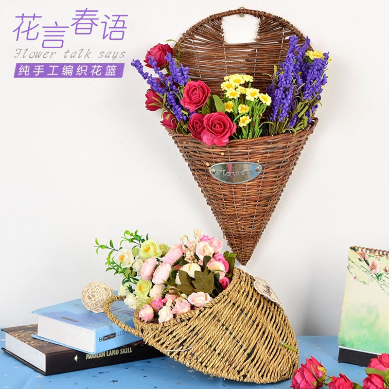 田园风小a花篮 藤编挂篮绿植多肉花盆干花插花篮子民宿装饰挂饰