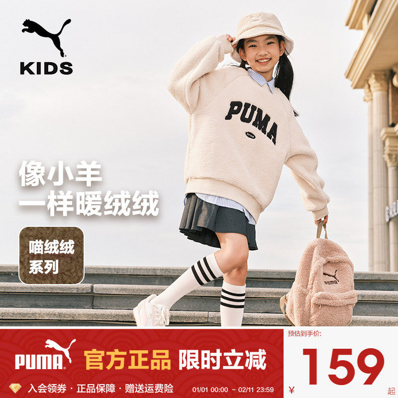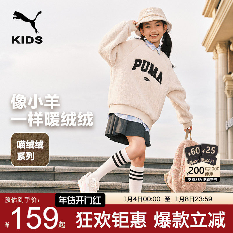 PUMA彪马男女童羊羔绒卫衣秋冬新款中大儿童加厚时尚上衣休闲套头