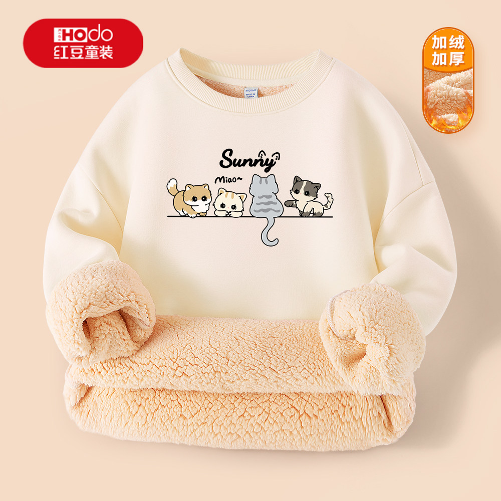 红豆童装女童羊羔绒卫衣秋冬款儿童加绒一体绒套头衫女孩上衣潮PC