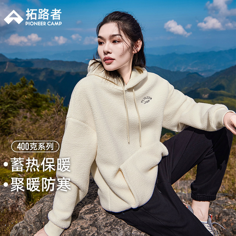 拓路者秋冬加绒卫衣连帽套头摇粒绒外套仿羊羔绒保暖颗粒绒抓绒衣