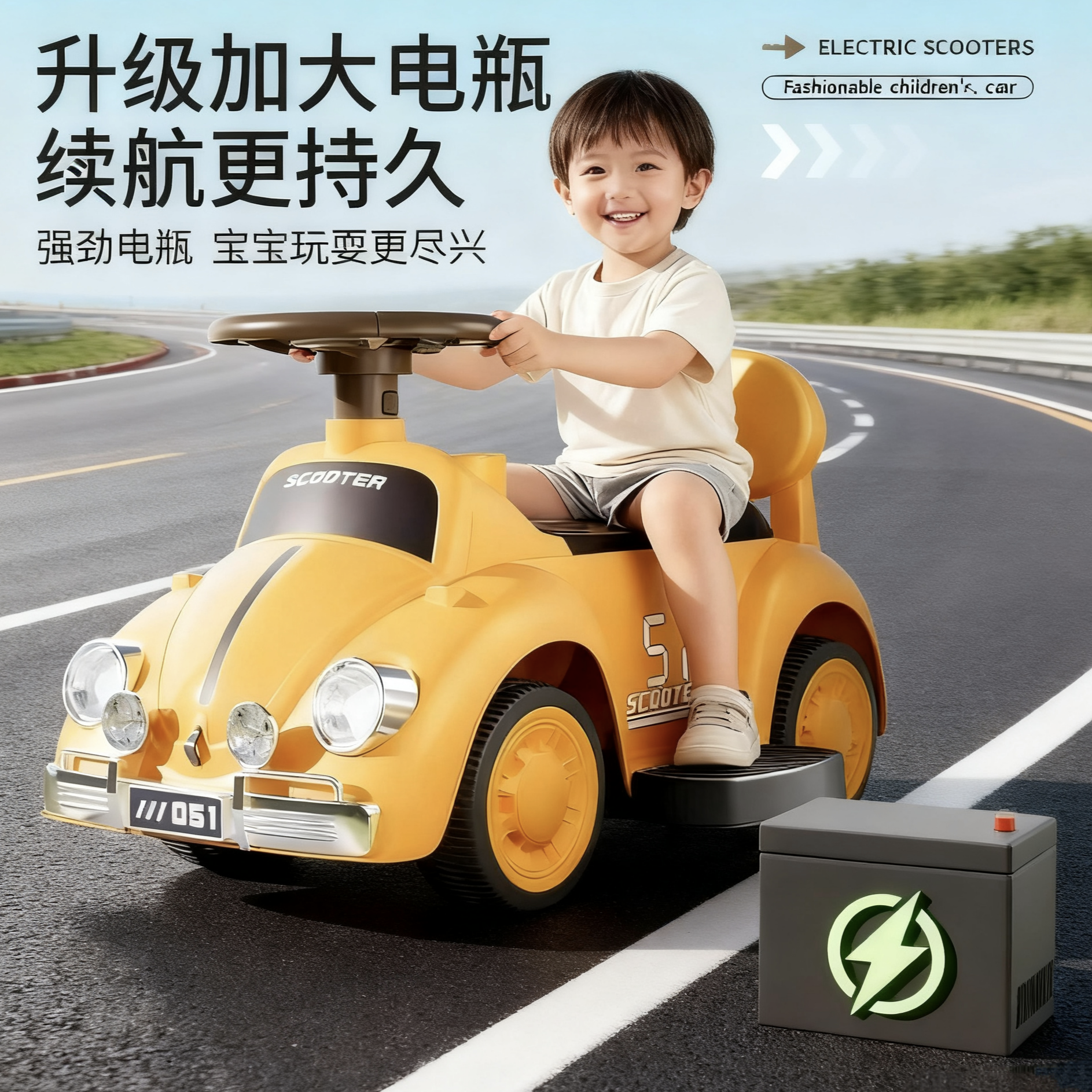 2025新款儿童溜溜车1-3岁宝宝孩童电动四轮平衡车推把防侧翻滑步4