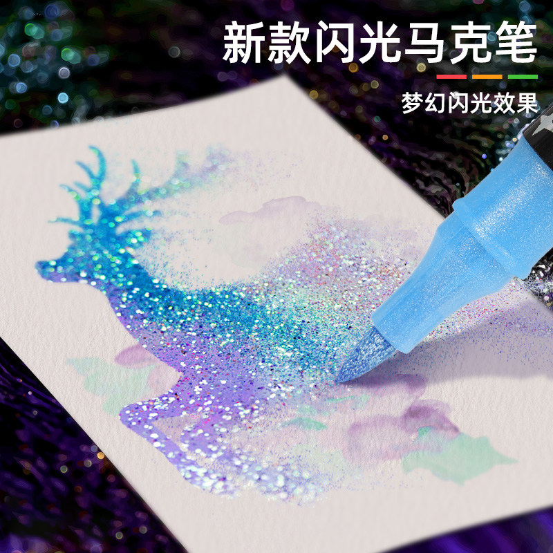 软头闪光马克笔水彩笔小学生美术专用彩笔荧光笔带闪粉儿童闪光笔珠光笔亮晶晶画笔流沙画画闪闪发光笔