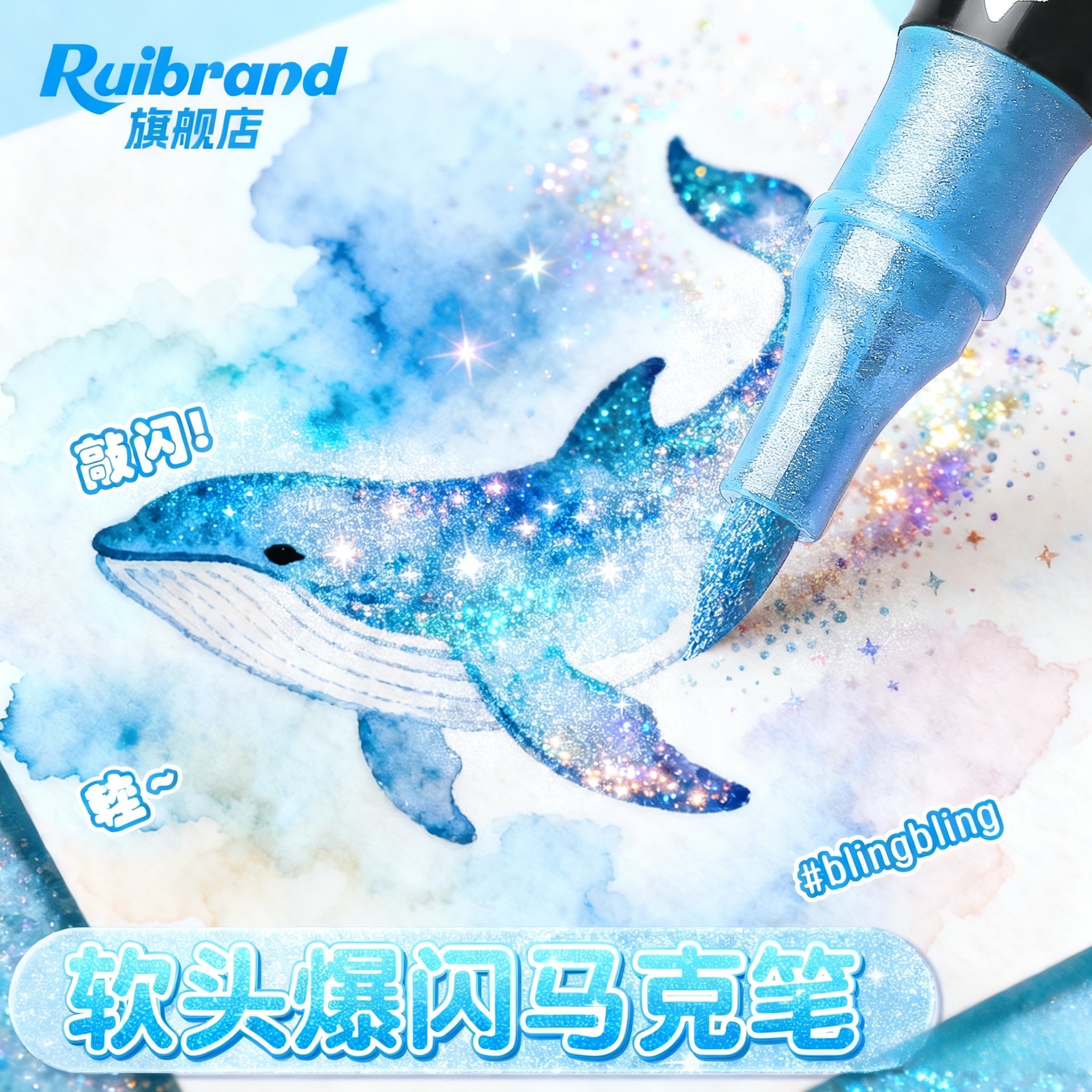 锐牌闪光马克笔儿童闪光彩色笔软头水彩笔荧光笔带闪粉小学生专用划重点幼儿园彩笔水性画画笔亮晶晶发光笔芯
