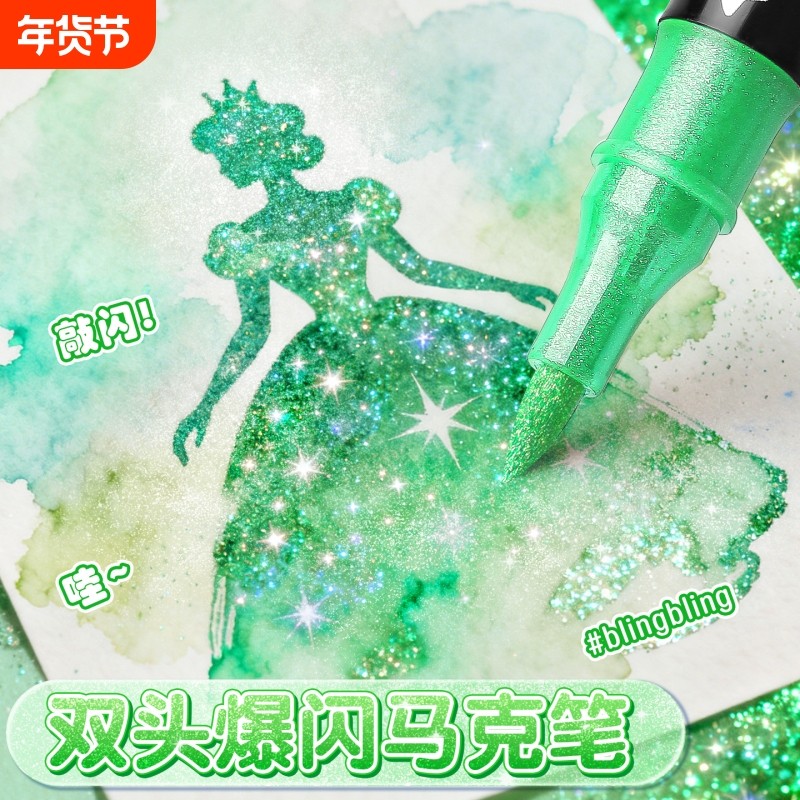 双色闪光笔丙烯马克笔小学生美术专用彩笔画画笔幼儿园儿童水彩笔荧光笔带闪粉流沙珠光彩色笔发光亮晶晶爆闪