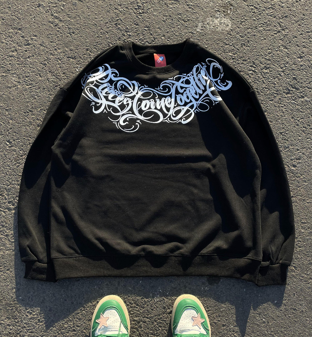 秋季美式高街翅膀翅膀印花圆领嘻哈卫衣男潮2025新款国潮潮流男装