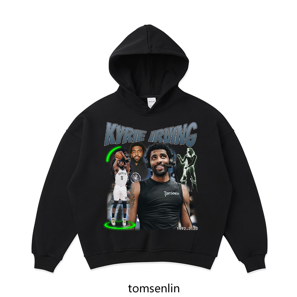 tomsenlin凯里欧文2K投篮条美式复古嘻哈卫衣380G连帽衫印花欧美