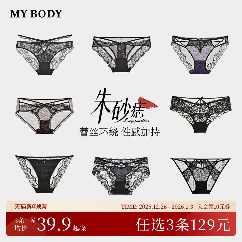 3件129|商场同款MYBODY新款内裤蕾丝网纱纯欲性感女生低腰三角裤