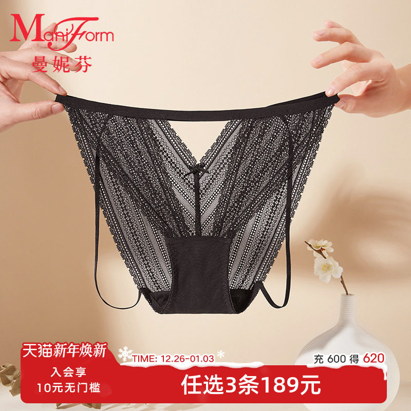 曼妮芬低腰性感轻薄蕾丝女士内裤纯棉底裆高开叉裤底裤20710272
