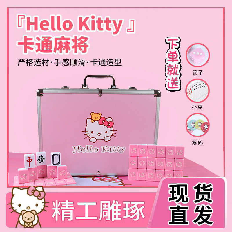 正版HelloKitty亚克力家用手搓卡通麻将牌kitty猫40#麻雀牌礼盒