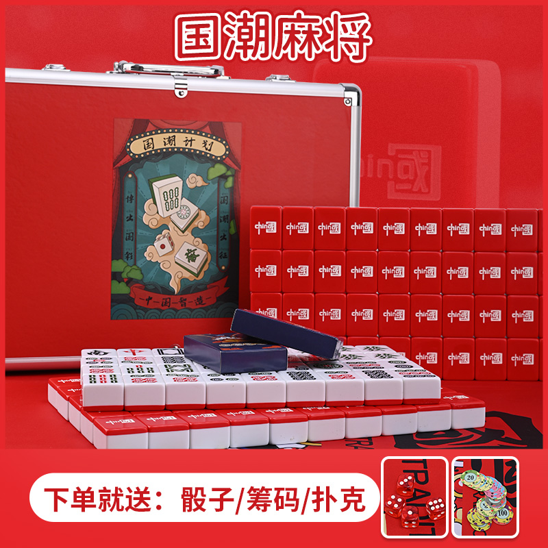 国潮中国风 大红卡通麻将 抖音网红家用手搓中大号定制礼品麻将牌