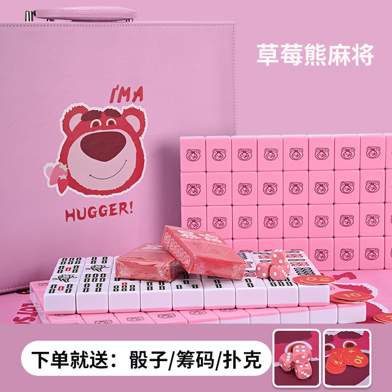 草莓熊 粉色卡通麻将 抖音网红可爱家用手搓中大号定制礼品麻将牌