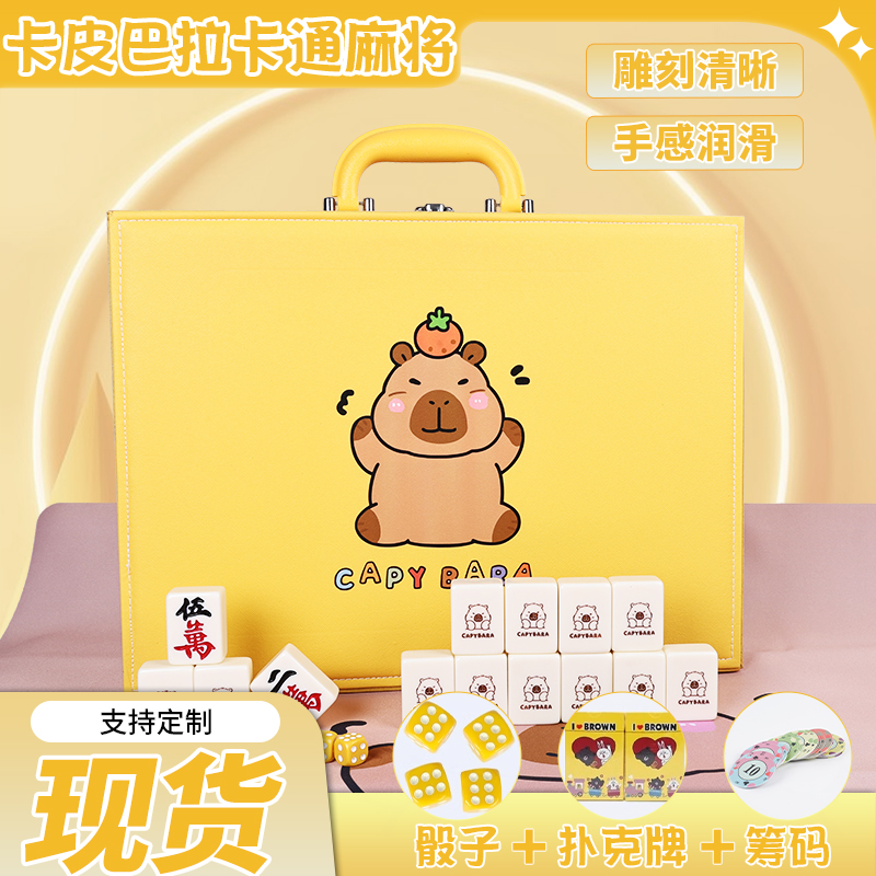 手搓麻将牌定制家用卡皮巴拉40/42/44中大号礼盒宿舍聚会卡通麻将