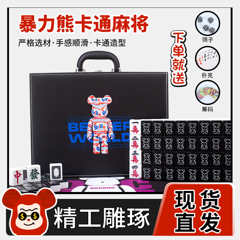 黑色暴力熊手搓家用麻将牌炫酷可爱卡通麻将40/42/44宿舍聚会雀牌