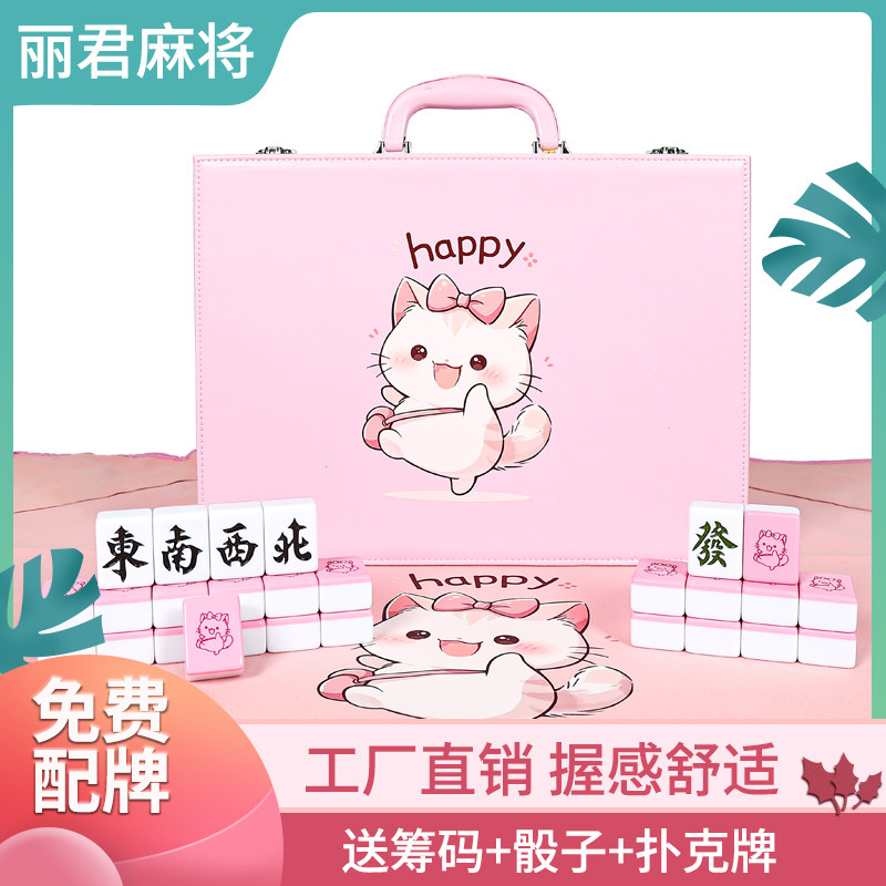 手搓家用麻将牌可爱小猫粉色可爱快乐猫卡通麻将小中大号定制麻将