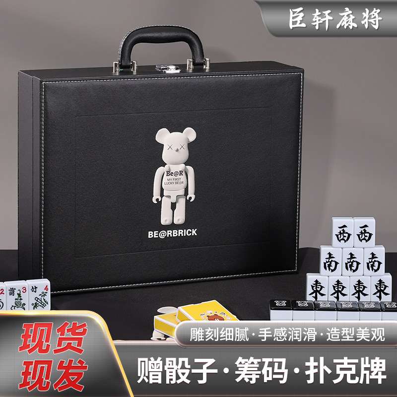 正品授权 熊本熊 潮牌网红黑色卡通麻将 家用手搓中大号礼品麻将