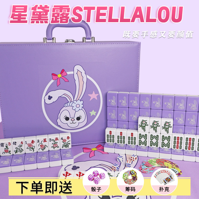 手搓紫色星黛露麻将家用卡通麻将40/42/44定制麻将聚会网红礼盒装