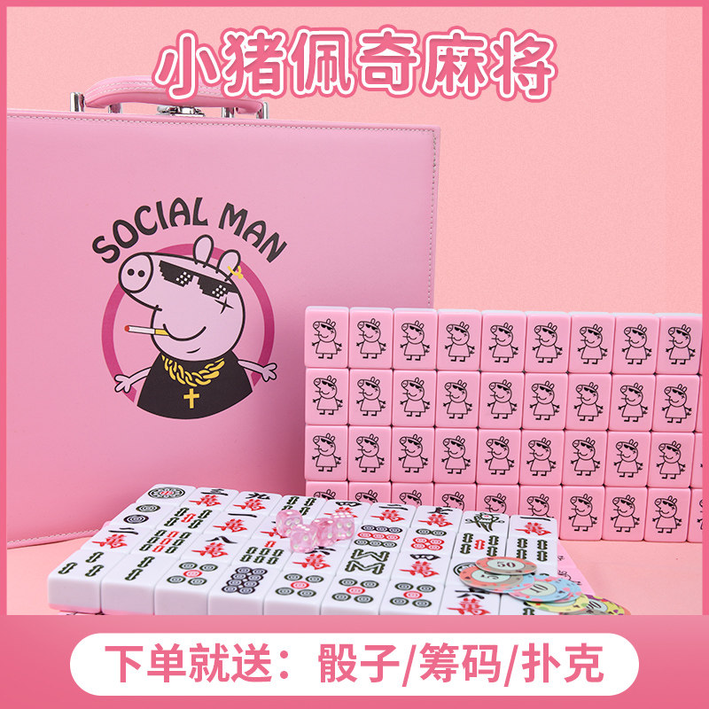 小猪佩奇卡通麻将 抖音网红社会人 粉色潮牌家用中大号礼品麻将牌