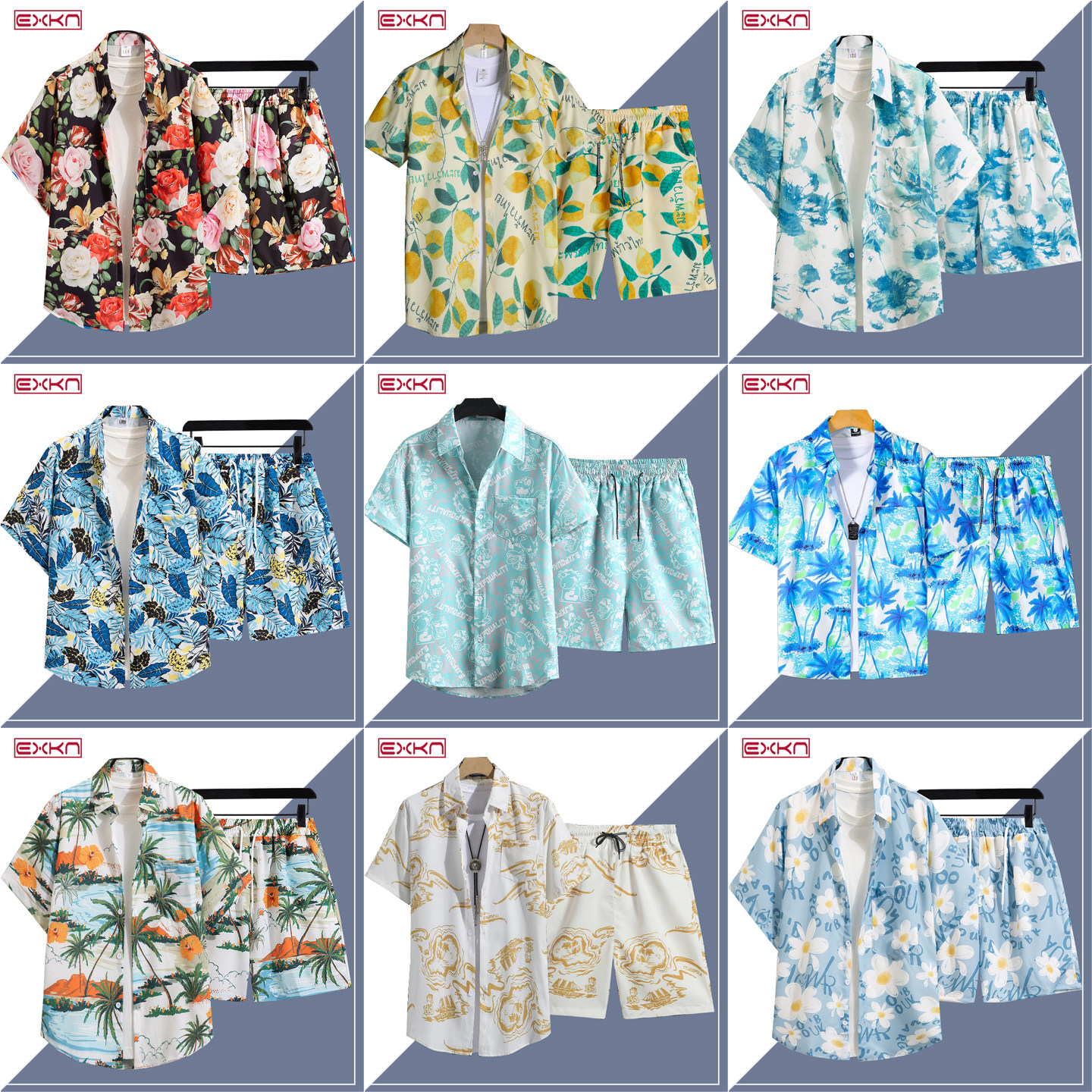 沙滩衬衫套装海南岛沙滩服男三亚海边度假花情侣夏威夷衬衣两件套