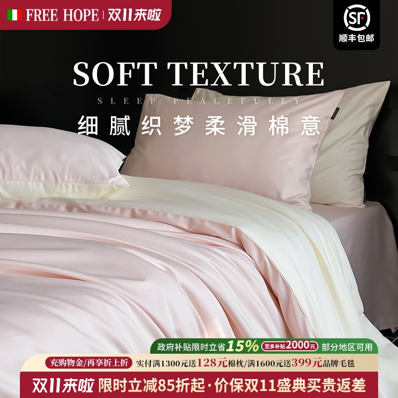 Freehope意大利秋季A类长绒棉全棉贡缎四件套纯棉被套床单床笠四
