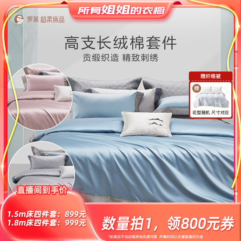 罗莱家纺60支贡缎四件套全棉纯棉床单被套被罩床笠三件套床上用品