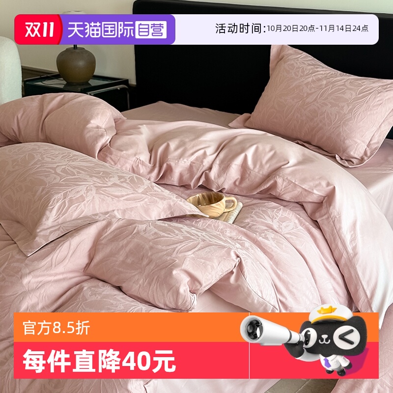 Girlish|法式少女风全棉贡缎四件套磨毛纯棉轻奢被套柔软床上用品