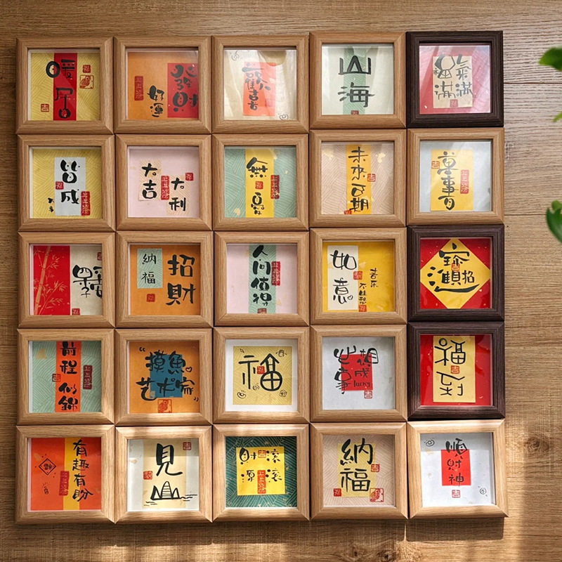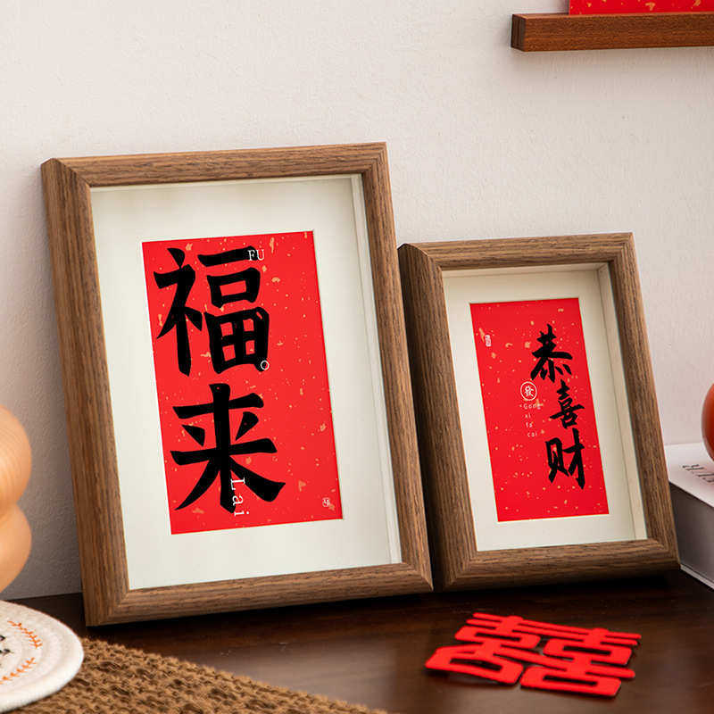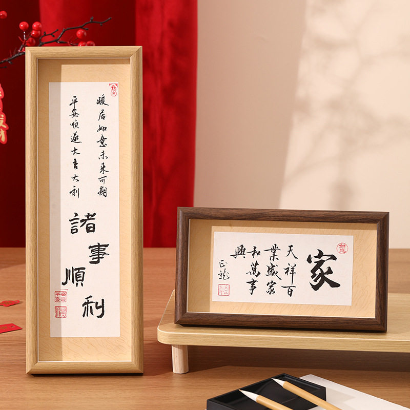 中式横款乔迁暖居新年相框摆台批发玄关桌面书法摆件茶馆装饰画框