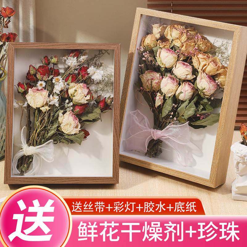 元旦中空干花相框diy材料包玫瑰花束永生花立体手工摆件高级感