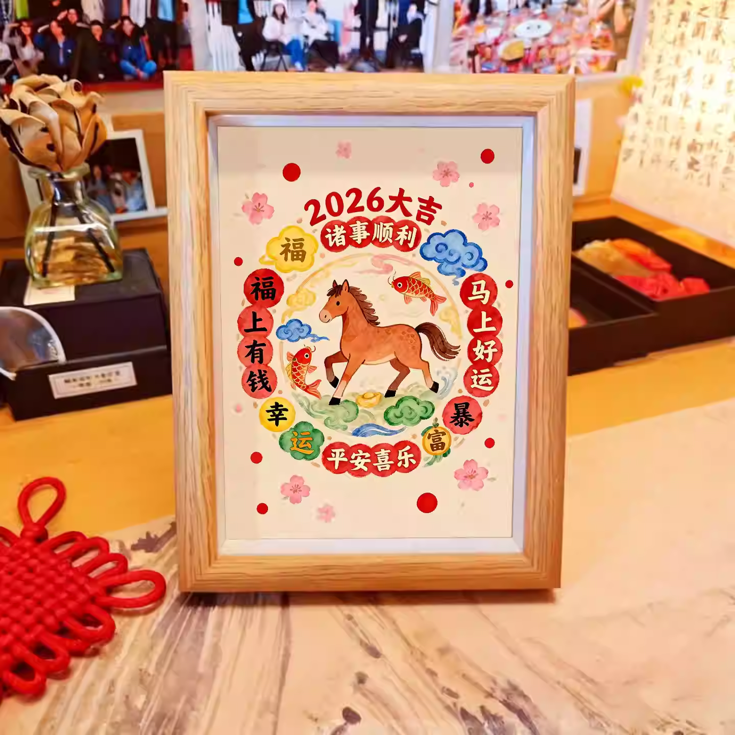 2026新款马年相框批发可爱招财木质摆台贺岁卡通动物工厂直供画框