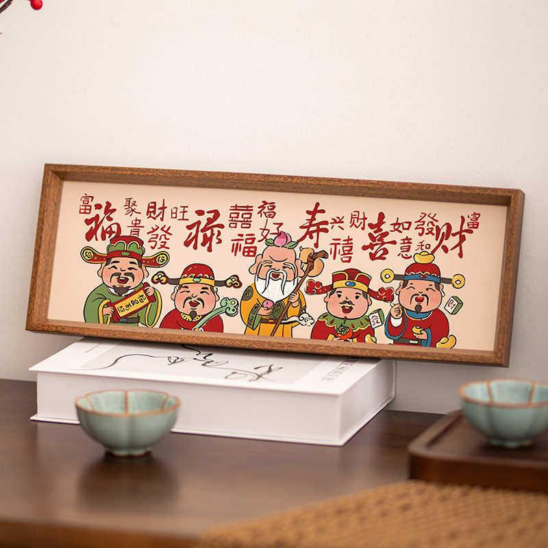 定制长条财神到相框批发福禄寿喜新年摆台八方来财招财玄关挂墙画