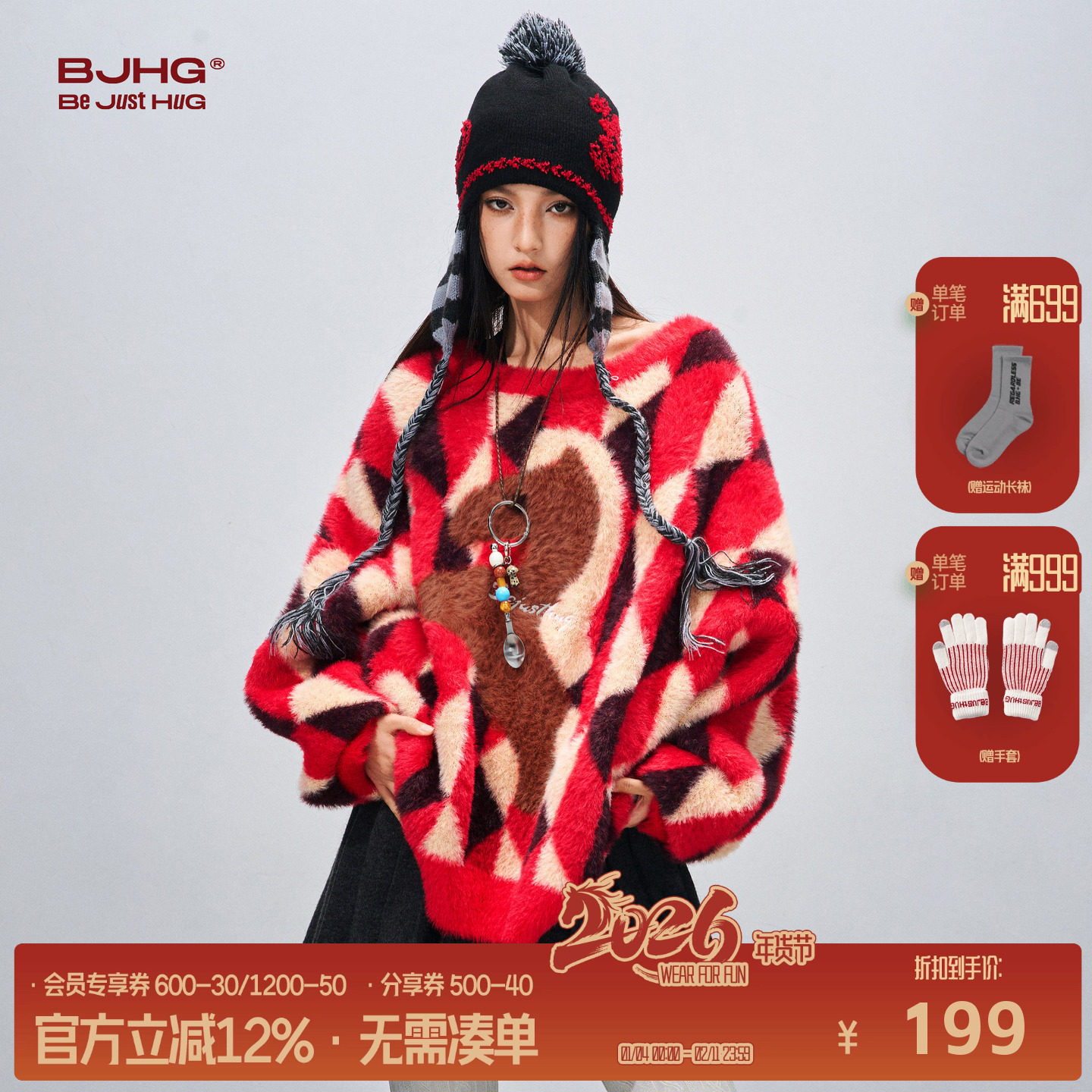 BJHG不计后果新年限定红色毛衣男女款冬季针织外套情侣装马年毛衣