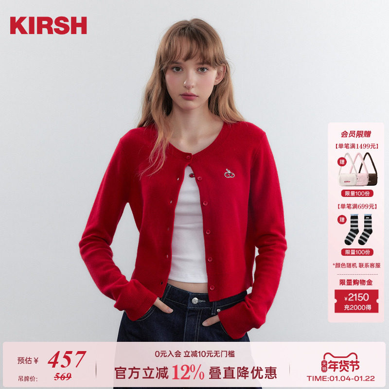 【宋祖儿同款】樱桃KIRSH 红色羊毛开衫外套女2026春韩版针织衫