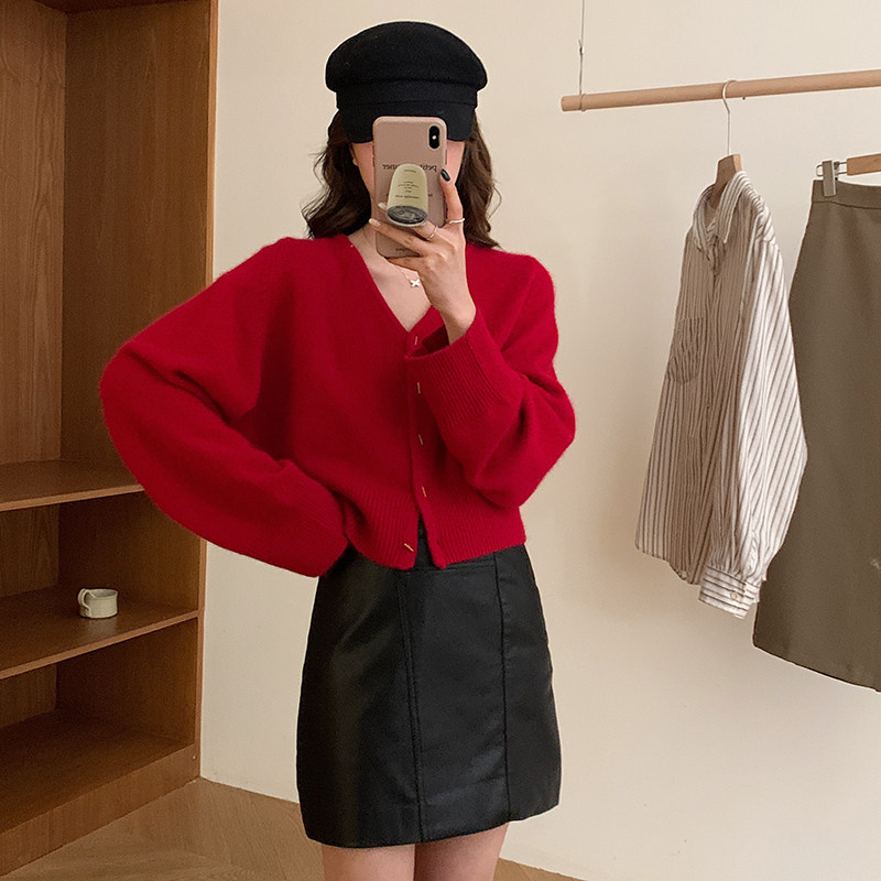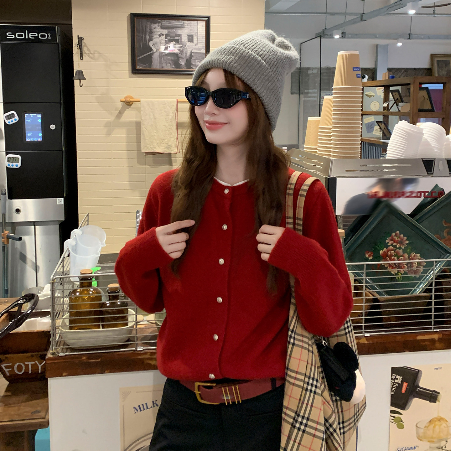 AMR UU◆氛围感 慵懒显瘦新年红色针织开衫毛衣女外套秋冬季新款