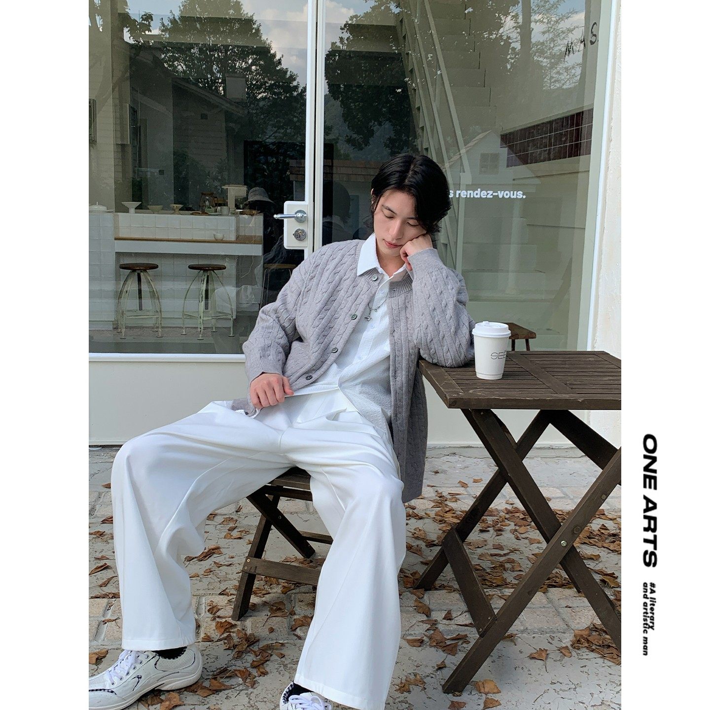 ONEARTS红色针织开衫毛衣男生春季日系男装慵懒纽扣宽松上衣外套