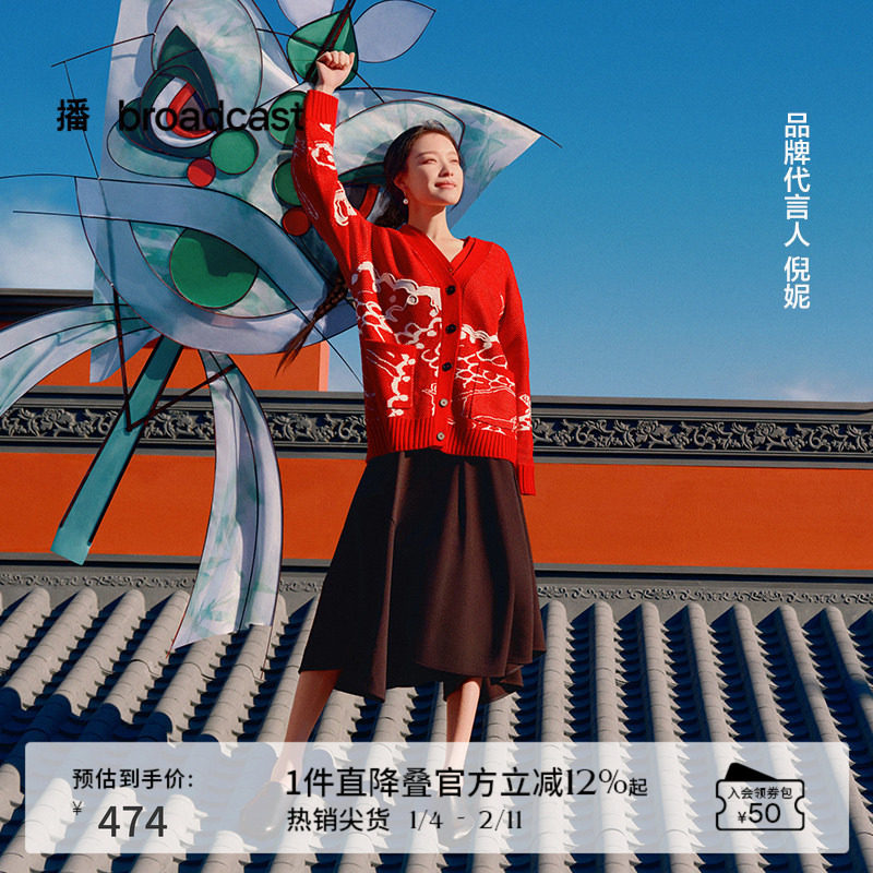 【新中式】播倪妮同款红色针织开衫女商场同款毛衣BDR1UD0404