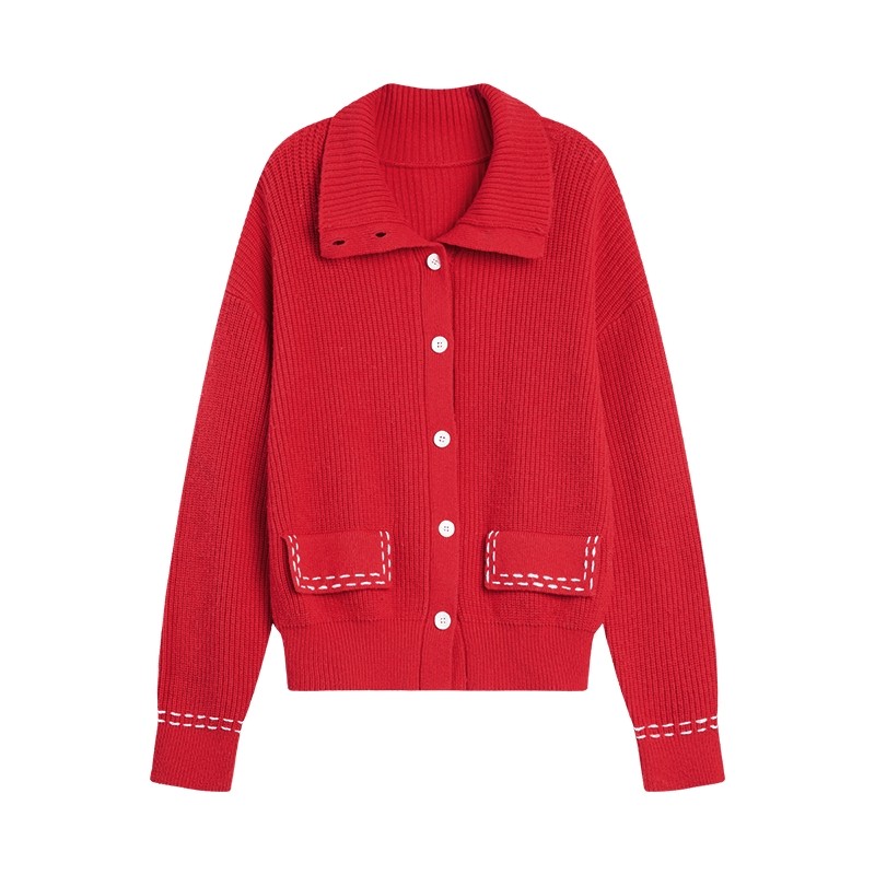 ICH MODE 美式红色针织开衫女冬季2026新款毛衣外套上衣慵懒风