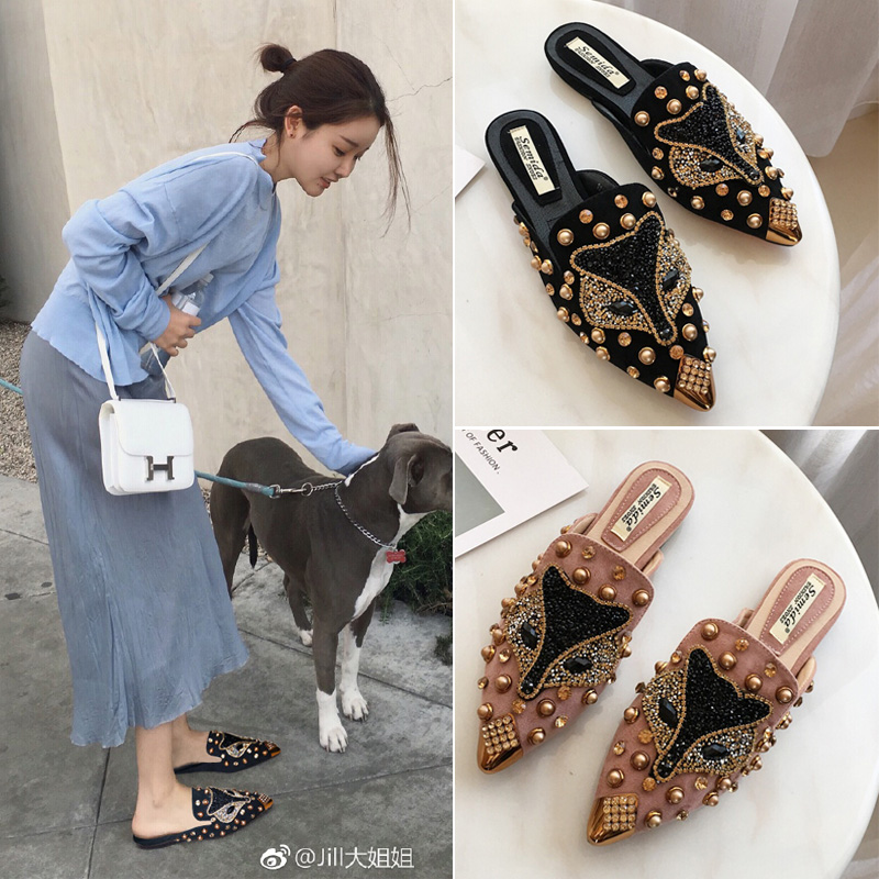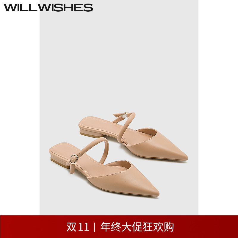 【折扣季,卖完不补】王玎设计尖头拖鞋女夏一脚蹬平底半6190-3