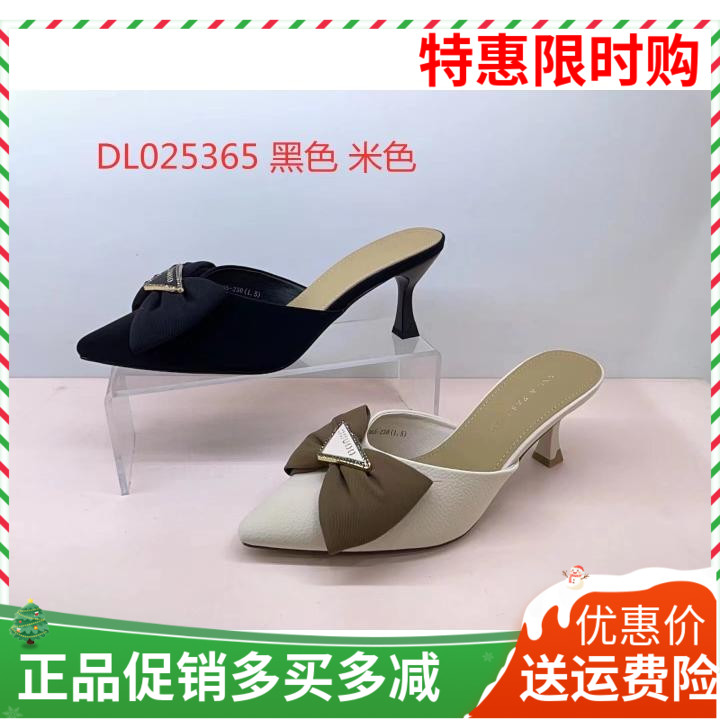 香香莉25365尖头拖鞋女春夏季新款蝴蝶结细跟包头半拖穆勒2024