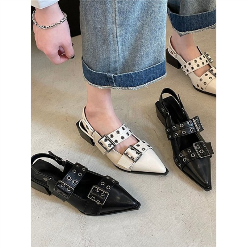 半皮带扣年春夏包头鞋子粗尖头拖鞋黑色女外穿2025单鞋新款跟复古