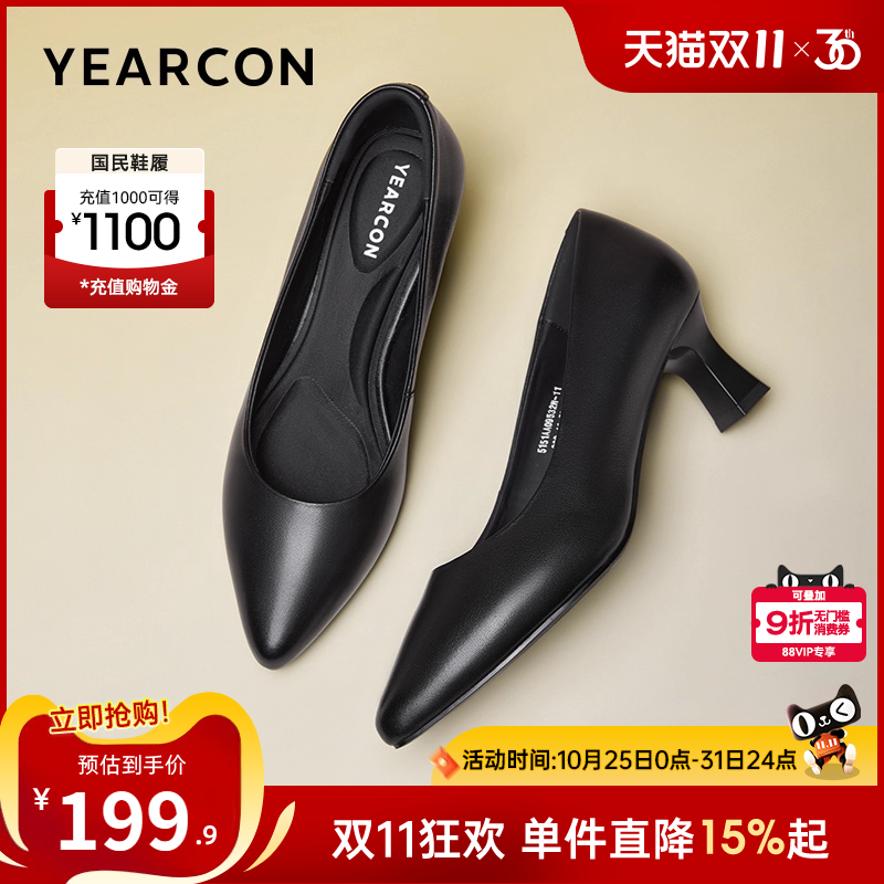 意尔康女鞋2025新款单鞋真皮尖头高跟气质通勤女士职业工作鞋面试