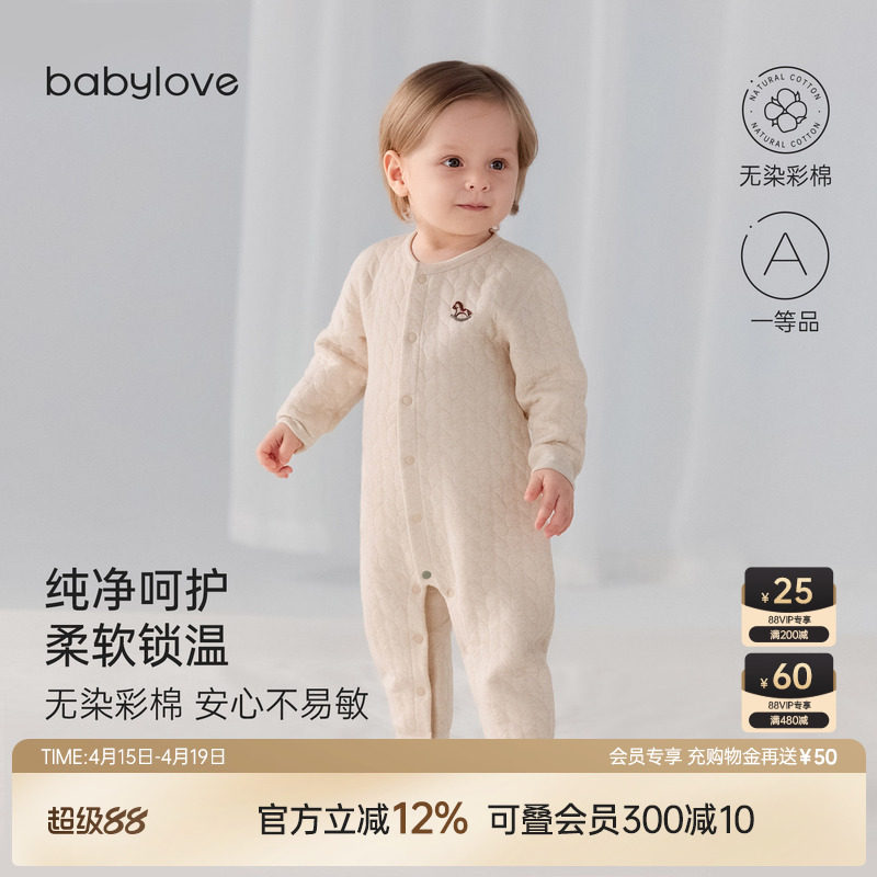 babylove婴儿连体衣春秋薄夹棉哈衣爬服宝宝纯棉衣服居家彩棉睡衣
