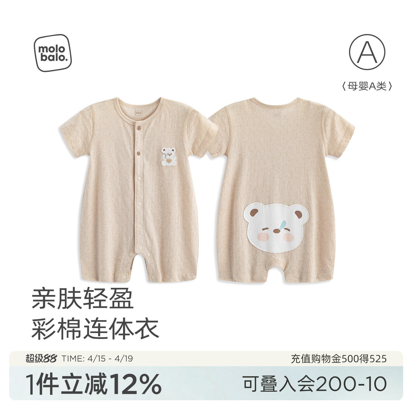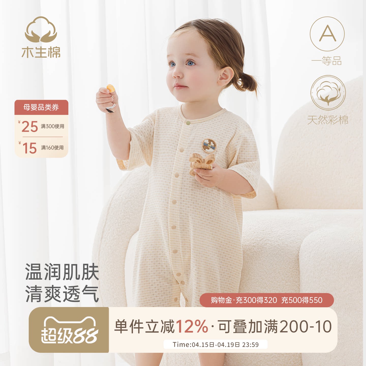 【0染彩棉】麦拉贝拉婴儿夏季连体衣轻薄透气宝宝护肚短爬无骨a类