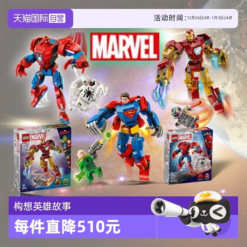 【自营】乐高漫威人偶76307钢铁侠76308蜘蛛侠76302超人大战机甲