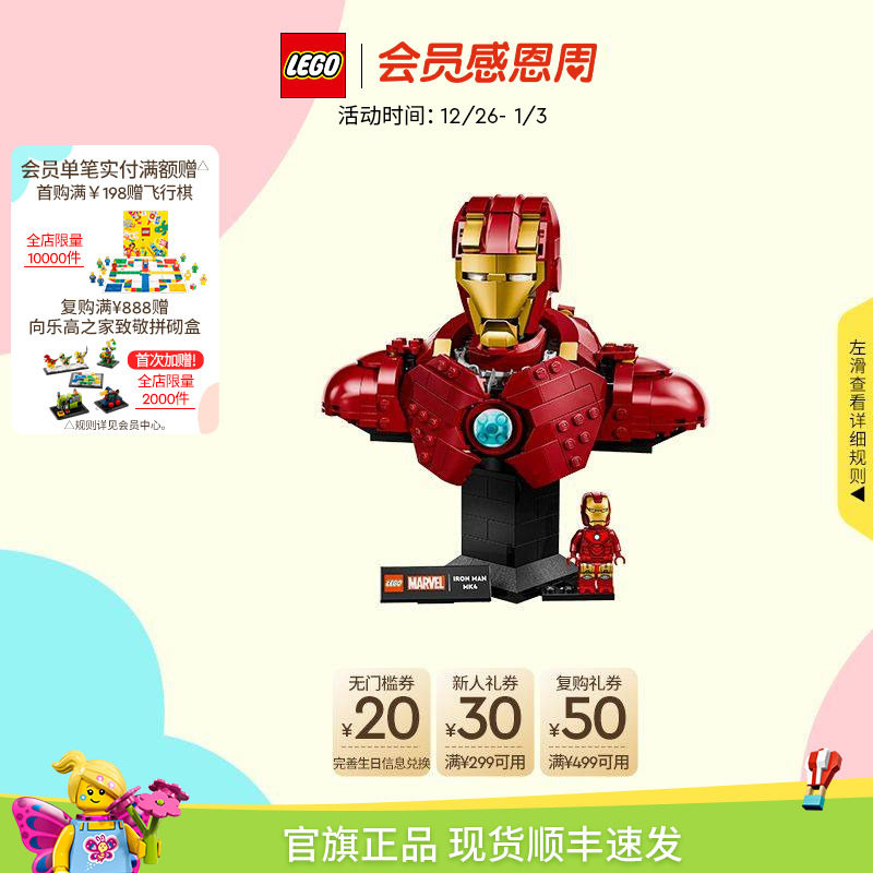 乐高官方旗舰店正品76326漫威钢铁蜘蛛侠半身像积木玩具礼物摆件