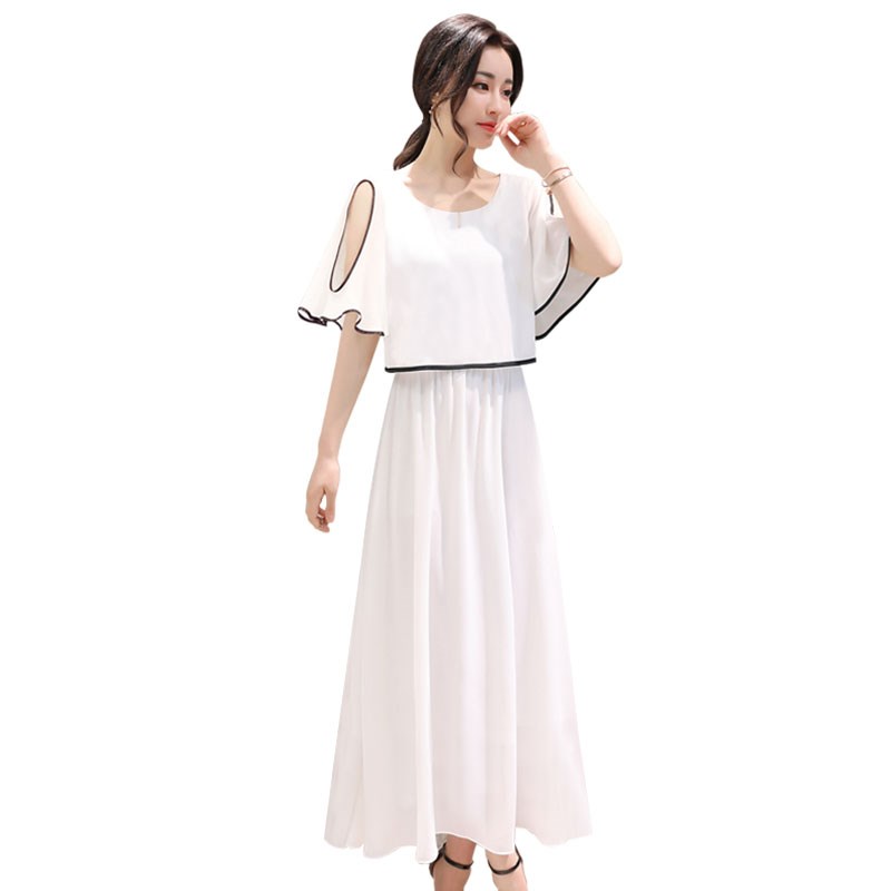 大码露肩雪纺连衣裙显瘦沙滩裙子女夏季波西米亚海边渡假白色长裙